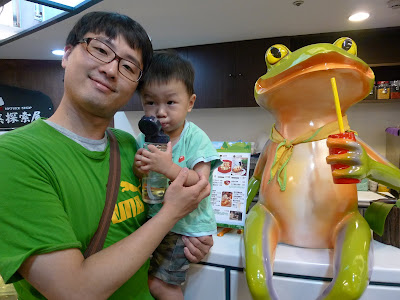 植物園中, 阿爸又要來一張蘇小鐵與青蛙一起喝飲料的合照。