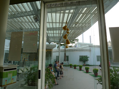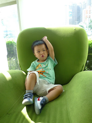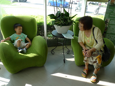 小人和阿嬤在入口處的等待區, 各據一張沙發, 這沙發我個人覺得綠的很漂亮!