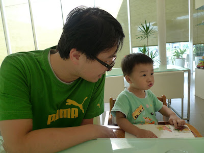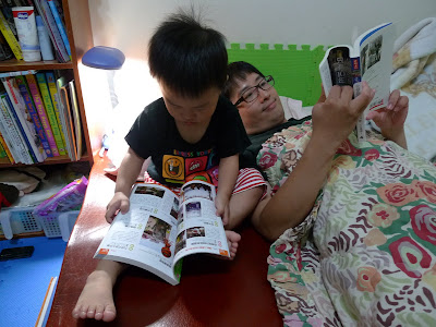 晚上揪感心的蘇小鐵還跟阿爸共讀咧, 還指定要看大人的書哦^^