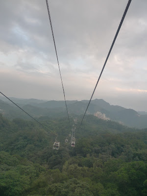 走了一段路去搭貓纜。人潮是很多, 等了大概半小時, 終於搭上纜車, 蘇小鐵在車廂內興奮地不得了, 各種感嘆詞彙紛紛出籠。