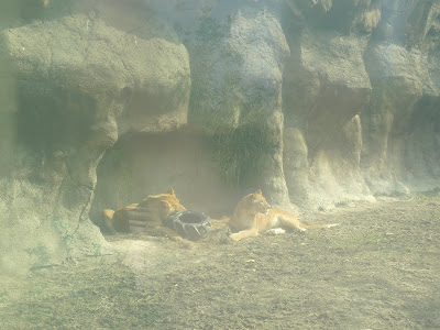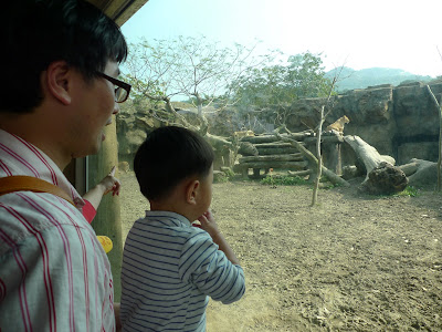 獅子區是大人氣啊, 雖然是隔著玻璃, 但幾隻母獅及一隻公獅就讓遊客熱血沸騰, 只是, 身為萬獸之王, 這隻公獅居然在那啃輪胎, 真是太悲慘了...