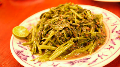 食物價格不便宜, 口味較重, 我個人覺得還OK啦, 但蘇小蓮對它的評價不高。比起我們點的蝦醬炒飯, 月亮蝦餅及炒空心菜, 反而它的起司蛋糕算不錯吃的。