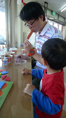 本日最後行程就是步行到大街上, 買了魯味及月亮蝦餅回來吃。小人學習用筷子吃意麵, 吃到後還會自己說: "我好厲害!"