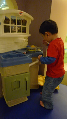 小人醒來後, 就帶他到飯店的兒童遊戲區鬼混一下。