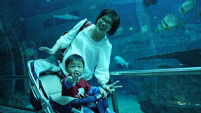 對於動物界中的魚類及爬蟲類, 我通常是不感興趣的, 冷冰冰的, 不能抱不能摸, 一點都不好玩; 不過海生館我倒是挺喜歡的。沒辦法, 海底生物, 尤其是深海魚種, 色彩繽紛, 種類又多, 看得讓人目眩神迷啊。尤其是珊瑚王國館內的海底隧道那一區, 我跟蘇小鐵一樣地興奮。頭上身旁都有魚游過, 真是太酷了。蘇小鐵幾乎是目瞪口呆, 看到連脖子都180度向後仰。