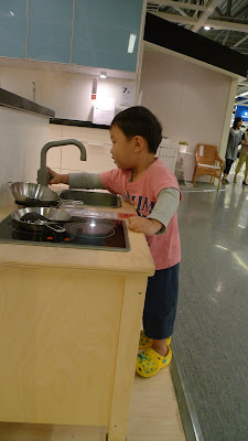 在IKEA裡面, 大人忙著看傢具, 小人自己找樂子。