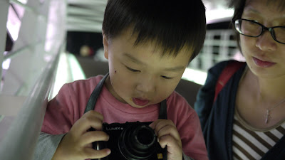 蘇小鐵在橋上看阿爸阿母瘋狂拍照, 也吵著要拍, 阿母好怕他摔到相機啊。