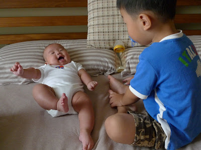 看看蘇老爹餵奶不忘上網, 而且沒有手還有靈活的雙腳...