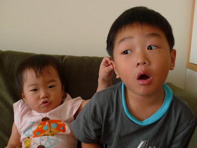 和金金一起扮鬼臉...